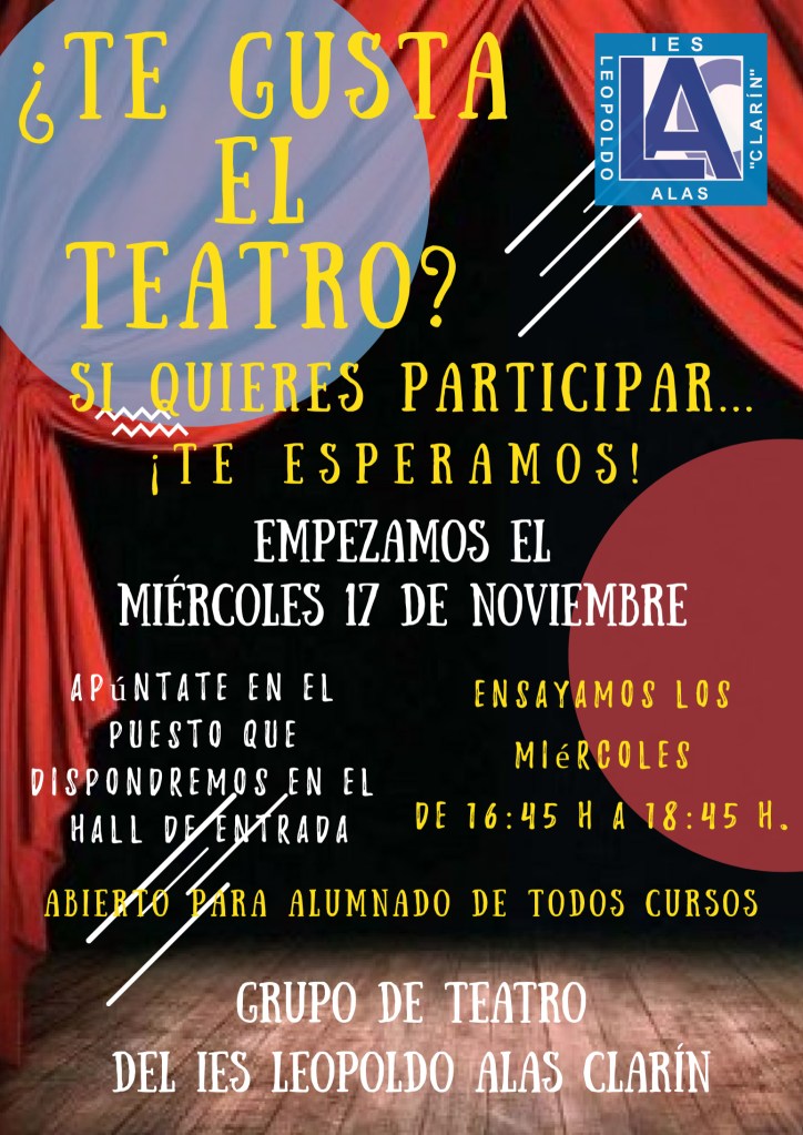 Este miércoles 17 de noviembre empiezan los ensayos del Grupo de Teatro del IES Leopoldo Alas Clarín.