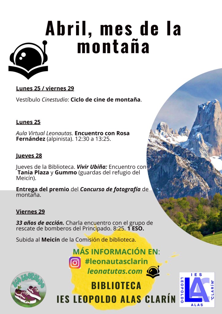 18 abril, 202218 abril, 2022leonautas ABRIL, MES DE LA MONTAÑA: CARTEL Y PROGRAMA Comparte esto: Haz clic para compartir en X (Se abre en una ventana nueva) X Haz clic para compartir en Facebook (Se abre en una ventana nueva) Facebook Me gusta Cargando...