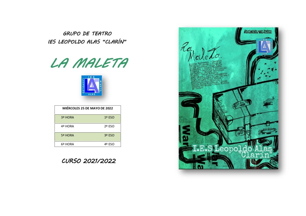 23 mayo, 202223 mayo, 2022alfonsoacebos «La maleta»: estreno del Grupo de Teatro del IES Leopoldo Alas Clarín Cartel diseñado por Gabriella Iovanelli Comparte esto: Haz clic para compartir en X (Se abre en una ventana nueva) X Haz clic para compartir en Facebook (Se abre en una ventana nueva) Facebook Me gusta Cargando...