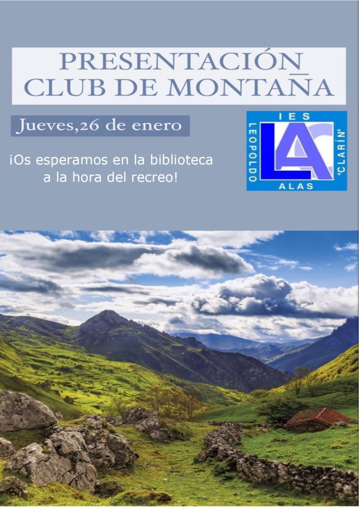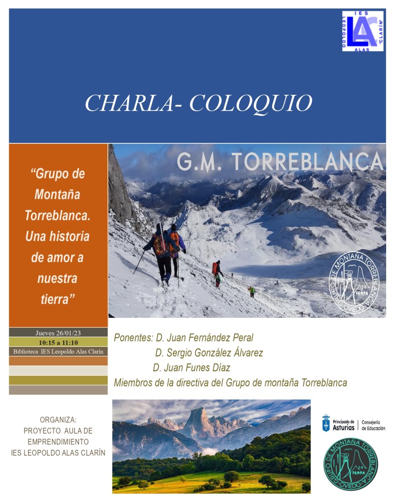 Sumamos una nueva actividad al programa de «Enero es Montaña». El jueves 26 a las 10:15 la junta directiva del G.M. Torreblanca se reunirá con el alumnado de 3ºESO en una charla que tendrá como tema la historia y funcionamiento del club. El encuentro ha sido organizado por el profesor Alberto Celedonio Casero-Borbolla que actualmente trabaja con el alumnado de 3º en la creación de nuestro propio grupo de montaña desde la asignatura Proyecto de Emprendimiento Social. Esta iniciativa será presentada al resto de la comunidad escolar, justo a continuación y también en la biblioteca, por los alumnos asistentes a la charla. ¿Te apuntas?